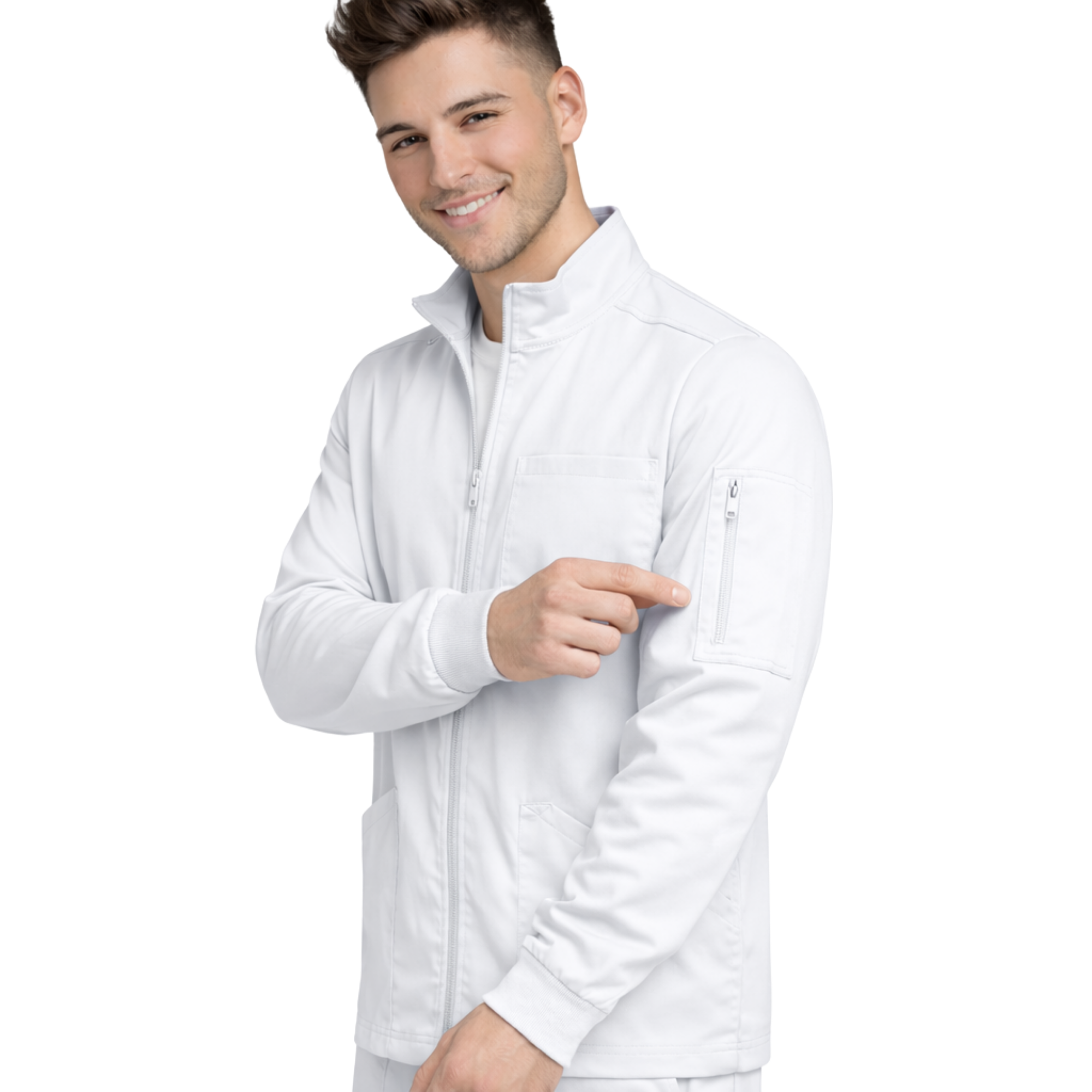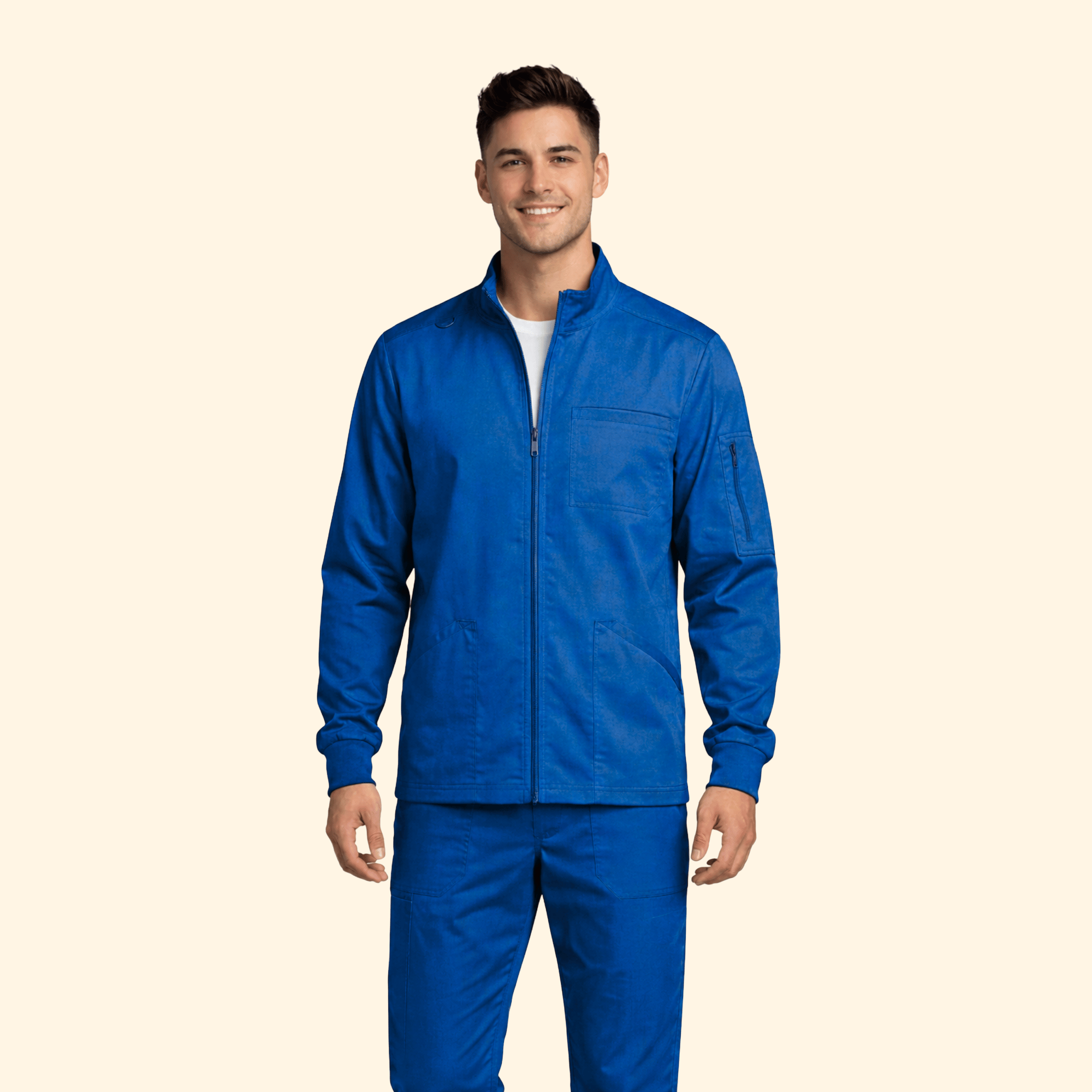 The M&M Scrubs Men’s Stretch Zip Utility Jacket is designed for comfort, durability, and professional style. Made with breathable stretch fabric for easy movement during long shifts, it features a modern zip-front design, rib-knit cuffs, and multiple functional pockets for everyday medical essentials. Perfect for nurses, doctors, and healthcare professionals who need reliable, comfortable workwear.