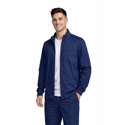 Made from a durable poly-cotton blend, this scrub jacket offers breathable comfort and long-lasting wear. Designed with soft knit cuffs, three roomy pockets, and a classic fit for warmth and easy movement. Triple-reinforced stitching ensures durability, making it ideal for busy healthcare professionals.